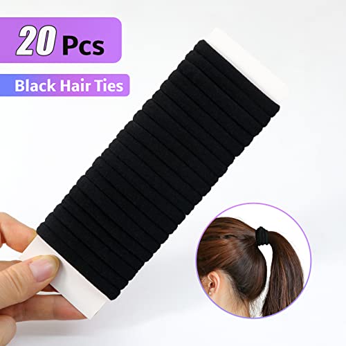 - 【Durable Material】: Our black hair ties made of seamless cotton, not easy to break. Diameter about 4 cm, wide 8mm.20pcs hair bands sufficient quantity to use for a long time.