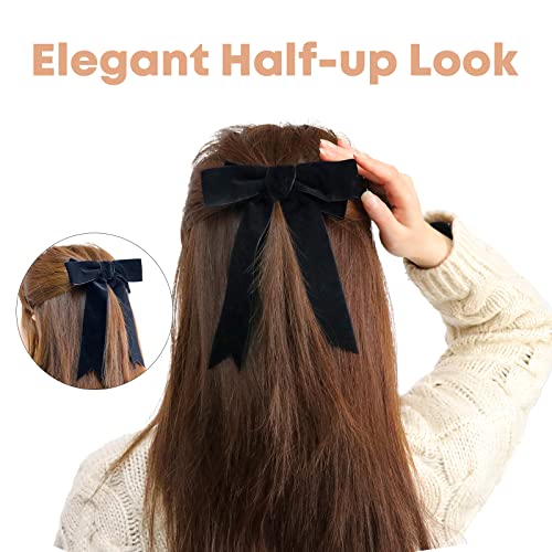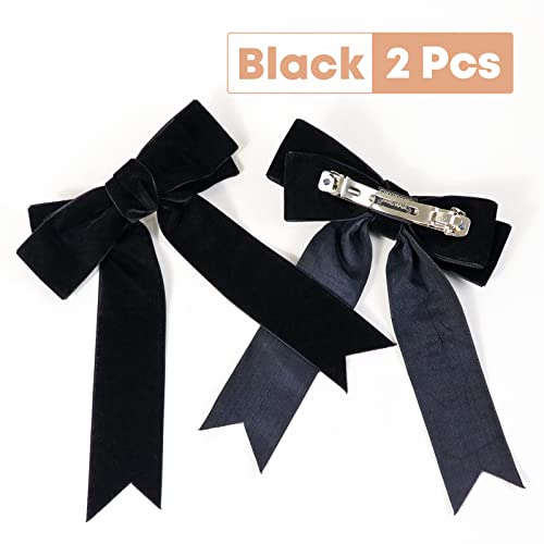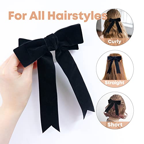 - 【Material】: Bow hair clip is made of velvet ribbon and metal barrette, The hair clip is equipped with a big bow and long tail, soft and durable, light and non-fading, the hair clip will not hurt your hair.