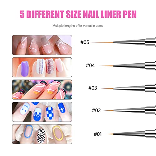 • 【Widely Usage】: Suitable for home and professional nail salons. nail liner painting brushes are easy to operate and can satisfy your various nails art design needs, such as pulling lines, painting delicate patterns, painting flowers, painting checkered patterns and great for small details. Suitable for any girl or boy who likes DIY nail art.