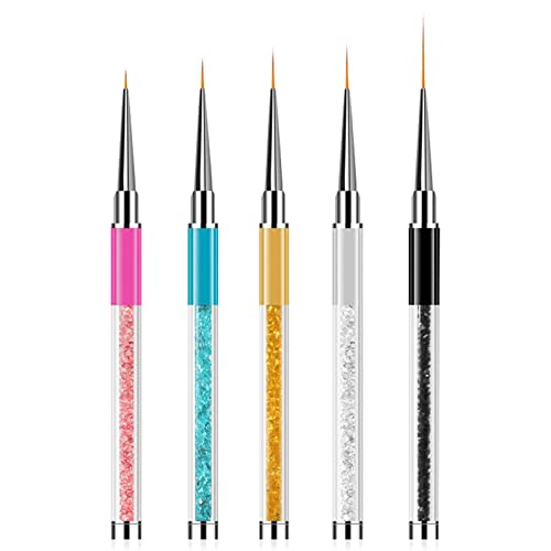 Sularpek 5 PCS Nail Art Brushes Set, Nail Art Liner Brushes, Nail Art Painting Brush, UV Gel Painting Liner Brush, 5/7/9/11/20mm Acrylic Rhinesto