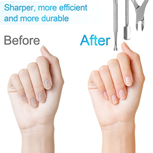 - ✅Dual End Nail Pusher & Cuticle Removal: Sharp to cut or scrape away dead cuticle on one end. Curved flat end perfectly pushes the skin back flawlessly. Durable metal resists wear and tarnish.