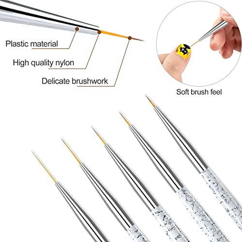 Sularpek Nail Art Brushes, 5 pcs Detail Nail Brushes, Nail Art Liner Brushes, Nail Art Design Painting Brush for DIY & Professional Use,Detailer,