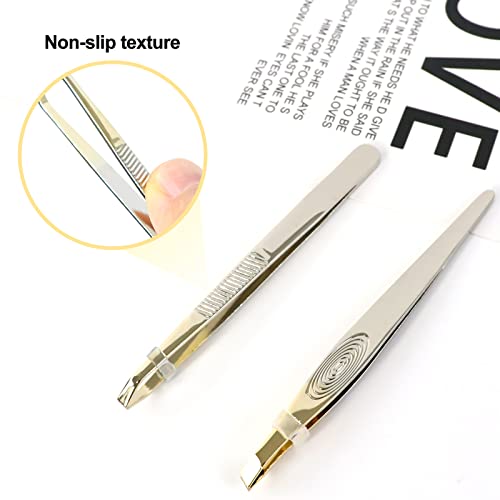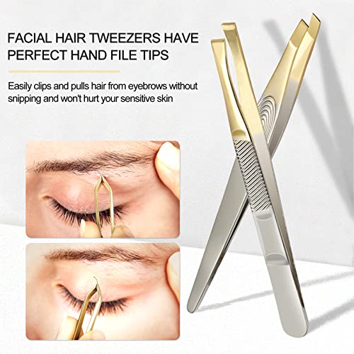 Sularpek Tweezers, 2Pcs Eyebrow Tweezers Set, Stainless Steel Slant Tweezer, Facial Hair Remover for Women and Men