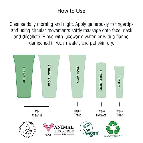 - CLEANSE DAILY: Cleanse daily morning and night. Apply generously to fingertips and using circular movements softly massage onto face, neck & décolleté. Rinse with lukewarm water, or with a flannel dampened in warm water, and pat skin dry.