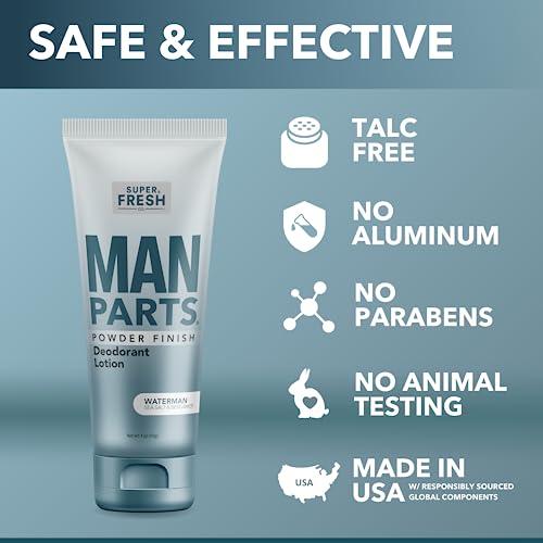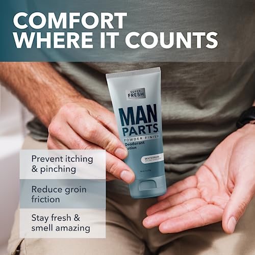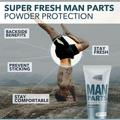 - NO MESS BODY & BALL POWDER DEODORANT LOTION | Say goodbye to messy body powder. Super Fresh Man Parts goes on smooth and dries to a silky powder coat layer of undercarriage protection