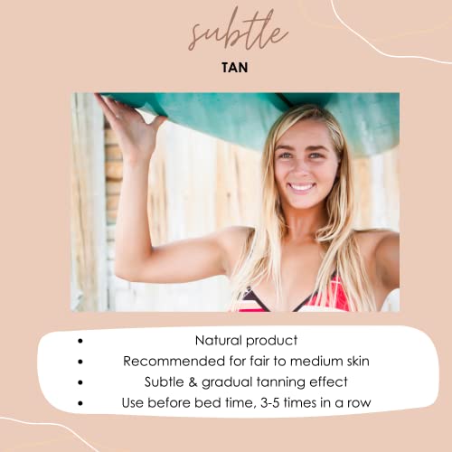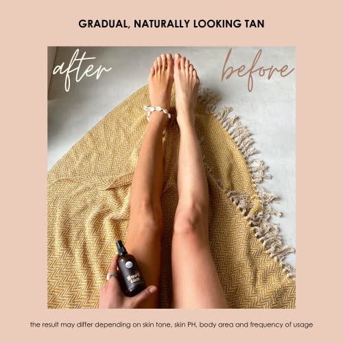 - The effect is gradual - for the best results use it 4-5 days in a row. The tanning effect may differ depending on the skin tone, skin pH, body area and frequency of usage.