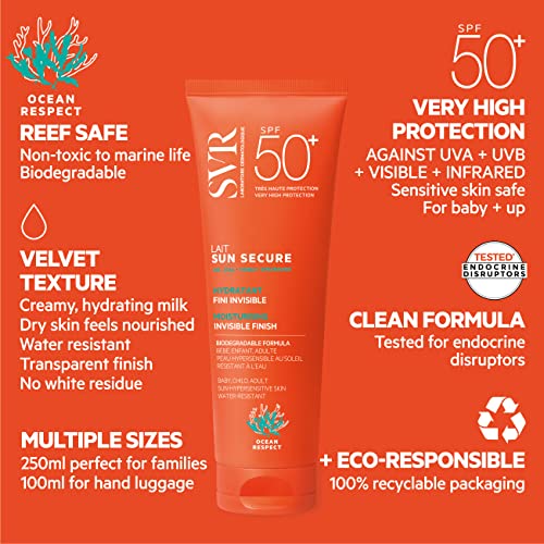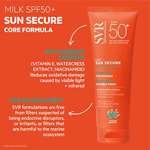 SVR SUN SECURE SPF50+ Hydrating Face and Body Sunscreen Milk for All Skin Types, Very High UVA/UVB, IR Protection, Non-Greasy, Water-Resistant, R SVR SUN SECURE SPF50+ Hydrating Face and Body Sunscreen Milk for All Skin Types, Very High UVA/UVB, IR Protection, Non-Greasy, Water-Resistant, R