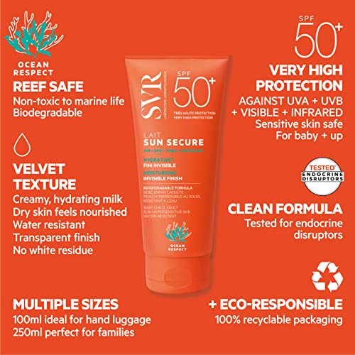 SVR SUN SECURE SPF50+ Hydrating Face and Body Sunscreen Milk for All Skin Types, Very High UVA/UVB, IR Protection, Non-Greasy, Water-Resistant, R