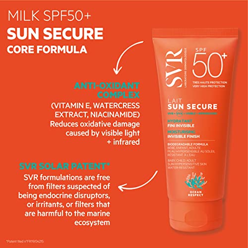 SVR SUN SECURE SPF50+ Hydrating Face and Body Sunscreen Milk for All Skin Types, Very High UVA/UVB, IR Protection, Non-Greasy, Water-Resistant, R SVR SUN SECURE SPF50+ Hydrating Face and Body Sunscreen Milk for All Skin Types, Very High UVA/UVB, IR Protection, Non-Greasy, Water-Resistant, R