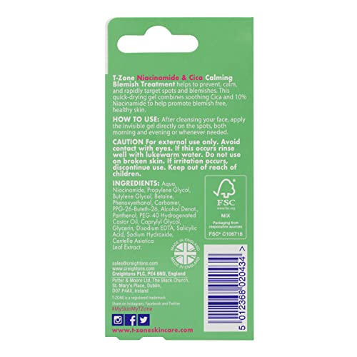 T-Zone Niacinamide & Cica Calming Blemish Treatment (8ml) - Calms & Soothes. Helps Reduce Blemishes. With 10% Niacinamide