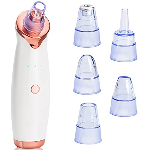 - 𝟓 𝐒𝐔𝐂𝐓𝐈𝐎𝐍 𝐇𝐄𝐀𝐃: Blackhead remover is designed with a rose gold finish. It is safer and more effective than the traditional facial cleaning method. It has 5 different suction heads for different skin problems.