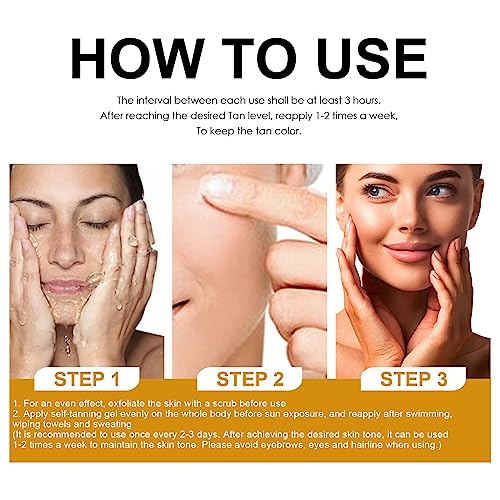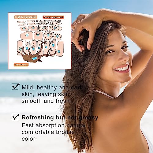 - 【Easy to Use】You just need to apply tanning cream on your skin, massage to absorb, then bathe in the sun for a natural bronzed complexion! (Tip: Recommended to use with regular sunscreen to ensure adequate sun protection. Avoid sun exposure during midday hours.)
