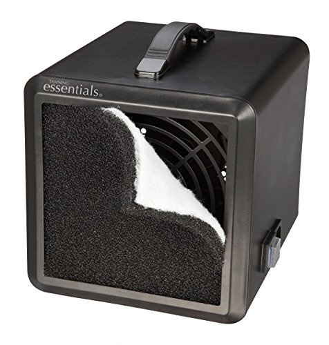 • The system works to draw in excess tanning solution that is in the air, into its two-stage filtration system.