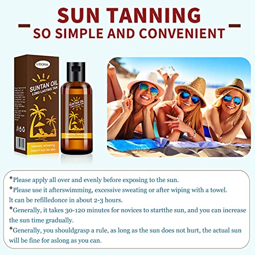 - 【Easy to Use】You just need to apply tanning accelerator on your skin, massage to absorb, then bathe in the sun for a natural bronzed complexion! Achieve a natural, darker & long-lasting tan with less exposure to the sun or sunbed with our tanning oil tan accelerator. Super effective in tanning beds or in the sun.
