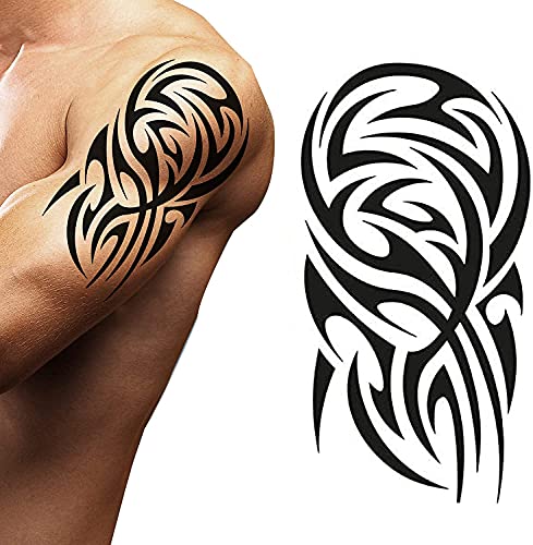 - Tribal Tattoo is 21cm x 15cm Shoulder body Temporary tattoo transfer paper. Ideal for sticking onto your shoulder. It takes about 3-5 minutes to apply your on skin, It last about 1 day. It can be easily removed with warm water