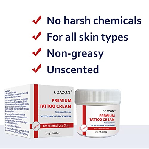 - 【SUITABLE FOR ALL SKIN TYPES, NON-GREASY】 This tattoo cream before the tattoo is made with natural ingredients, unscented, with no harsh chemicals, non-greasy, and easy to clean.
