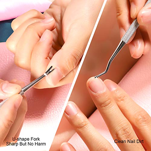 - The Most Practical & Portable Cuticle Fork - Full length only 4.92 inch, double head with different design: one is fork shape, U-shape fork can help quickly remove small hangnail or also dead skin; another one is curved end with little spoon to get the debris out from nail and skin and clean inside nails