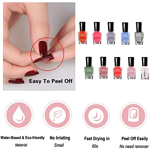 - 【Healthy Nail Polish】This nail polish is water-based peelable formulation, made of eco-friendly material, no irritating smell, no hurt to nails or skin, safe nail polish for both adults & teens.