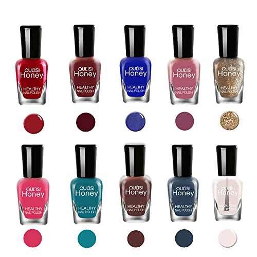 - 【Rich Nail Polish Set】One nail polish set include 10 bottles colored nail polish ,1 bottle base & top nail polish ,1 pc nail art sticker. Apply one layer base nail polish to protect more well of your nails, after it dried up, apply 1-2 layers of colored nail polish. Finally using top nail polish to let your nails more shiny and long lasting, you can also decorate your nails with sticker you like, your beautiful nail art is completed.