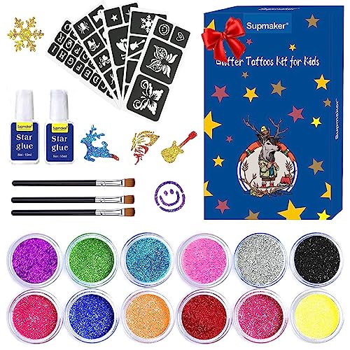 Temporary Glitter Tattoos Kit for Girls, 12 Color Tattoo Set for Creative Kids, Fun Arts & Crafts for Girls, Great Birthday Presents Gift for 6 7 Temporary Glitter Tattoos Kit for Girls, 12 Color Tattoo Set for Creative Kids, Fun Arts & Crafts for Girls, Great Birthday Presents Gift for 6 7