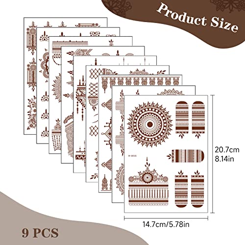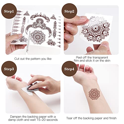 Temporary Tattoo Brown Red 3D Mandala Flower Tattoo Stickers Indian Lace For Hands Arm Neck Body Art Waterproof Fake Tattoos Kit For Women Girls