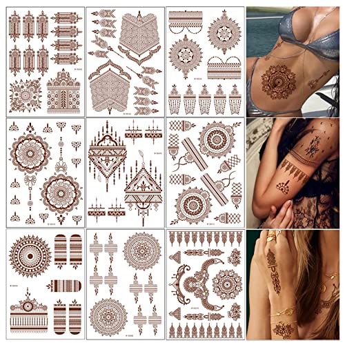 Temporary Tattoo Brown Red 3D Mandala Flower Tattoo Stickers Indian Lace For Hands Arm Neck Body Art Waterproof Fake Tattoos Kit For Women Girls Temporary Tattoo Brown Red 3D Mandala Flower Tattoo Stickers Indian Lace For Hands Arm Neck Body Art Waterproof Fake Tattoos Kit For Women Girls