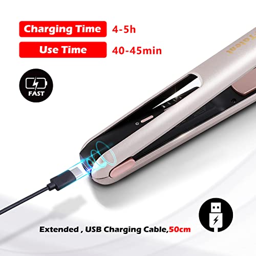• 【Cordless Use】- With the cordless hair straightener, you can straighten your hair anytime, anywhere and get rid of the distance limitation of plugging in. With a 2-hour fast charge, you can get up to 45 minutes of use.