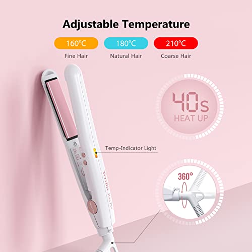 Terviiix Mini Hair Straighteners for Short Hair with Adjustable Temperature, Dual Voltage Tourmaline Ceramic Portable Travel Mini Straightener,1/