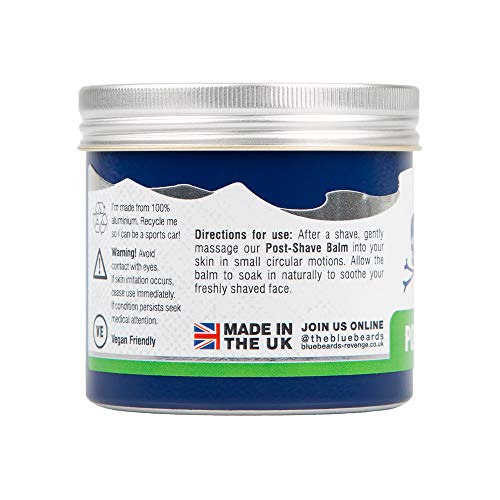 - ECO FRIENDLY: The Bluebeards Revenge is committed to reducing the amount of virgin plastic and single-use packaging it creates. That’s why this moisturising aftershave balm is manufactured in the UK and comes packaged in an eco-friendly aluminium tin. After use, this tin can be recycled, refilled or repurposed again, meaning there’s no need for it to end up in landfill!