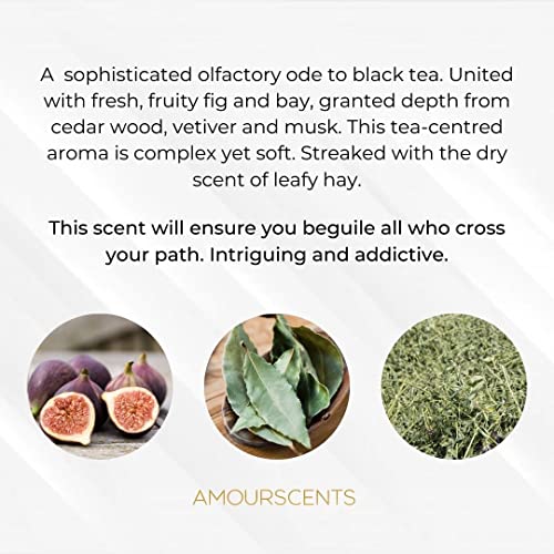 - FRESH AND SENSUAL - A sophisticated olfactory ode to black tea. United with fresh, fruity fig and bay, granted depth from cedar wood, vetiver and musk. This tea-centred aroma is complex yet soft. Streaked with the dry scent of leafy hay. This scent will ensure you beguile all who cross your path. Intriguing and addictive.