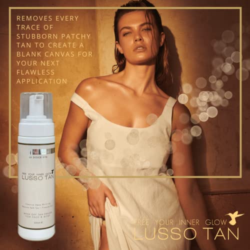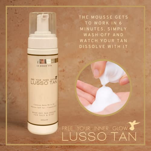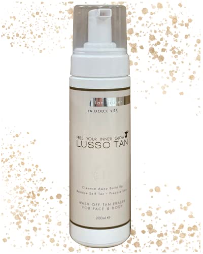 - ✨ EFFORTLESS TAN REMOVAL: No more harsh scrubbing, aching arms and awkward positions in the shower trying to get to those hard-to-reach areas. Lusso Tan Eraser lifts and removes your unwanted self tan in minutes!! The essential oils work their magic on stubborn areas such as elbows, knees and ankles so you don’t have to. Our easy-to-apply foaming cleanser will leave your skin tan-free, velvety-smooth and revitalised.