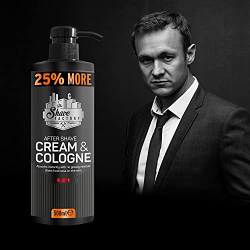The Shave Factory After Shave Cream & Cologne Ruby 2in1 500ml 25% MORE - For Professional Barbers/Hairdressers and Traditional Shaving Enthusiast