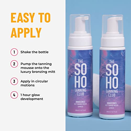 The Soho Tanning Club Express Self Tan 200ml | Innocence Scented Quick Drying Express Tanning Mouse | 1 Hour Fake Tan | Scented Express Fake Tan