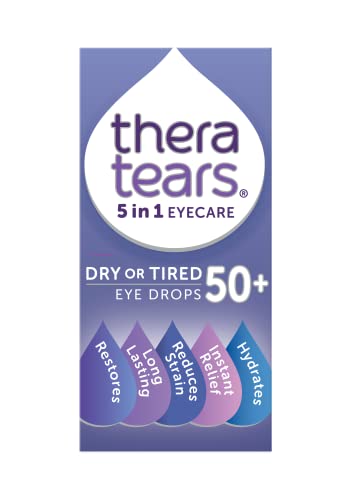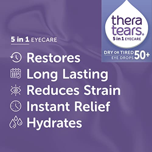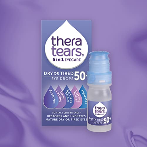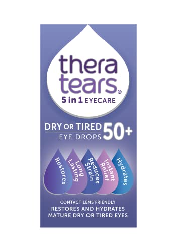 TheraTears Dry or Tired Eye Drops 50+ | Restores and Hydrates for Mature Dry or Tired Eyes | Contact Lens Friendly | Long-Lasting Relief | Preser