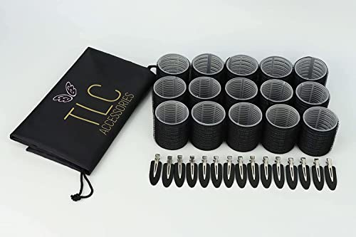 - <p><strong>Package includes:</strong> TLC Rollers set includes 15 44mm self-grip velcro hair rollers in the colour Black, 15 duckbill clips to hold the rollers in place and 1 black drawstring storage bag.</p>