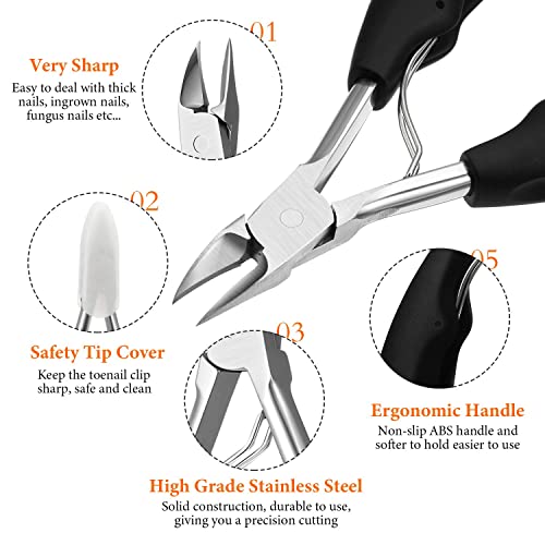 - Toenail clippers: our toenail clipper is designed with pointed blade of stainless steel material, ideal for thick and ingrown nails, bringing you effective using experience; The handle part is made of ABS material, smooth surface and comfortable for you to grip, and the head is covered with protective cap to prevent your hands form hurting