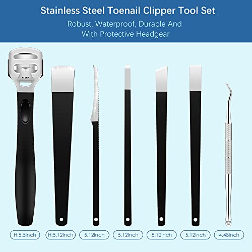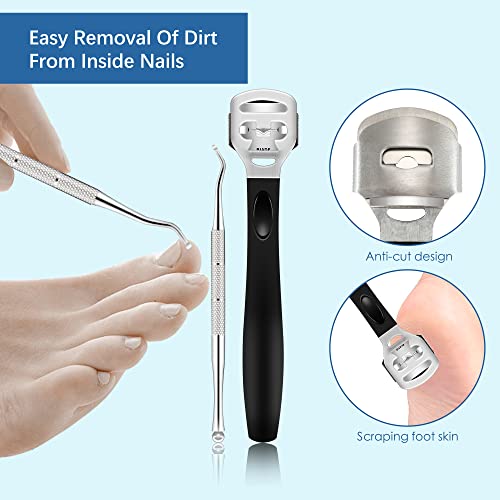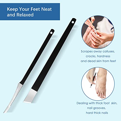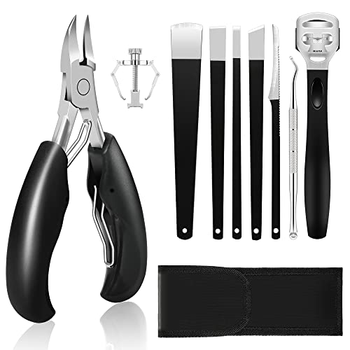 - ✅9 In 1 Professional Toenail Clippers Set - This heavy duty nail clippers set includes 1×Ingrown Toenail clipper, 2×Flat scraper, 1×Toenail Lifter, 1×Curved scrapers, 1×Angled knife, 1×Scalloped knife, 1×Toenail Corrector, 1×Callus Shaver. These toe nail clipper tool set pedicure tools safely cut nails and remove dead skin, calluses, plantar warts and corns from feet, easily relieving foot pain and giving our feet the perfect care.