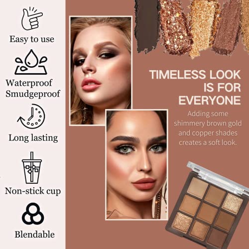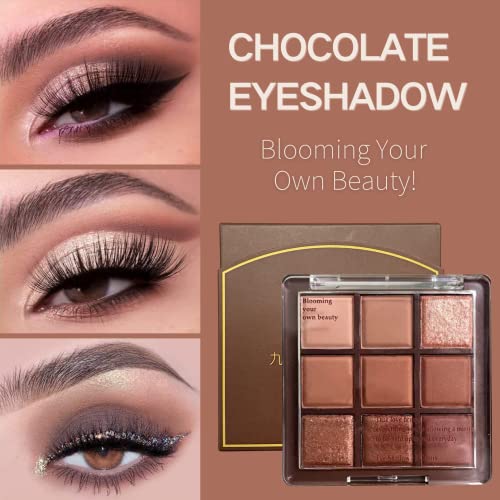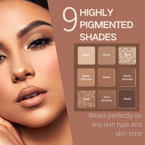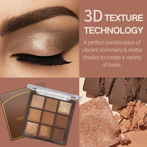 - 【Highly Pigmented 9 Colours Eye shadow Palette】4 Colours eye shadows in matte, 5 Colours eyeshadow in shimmer and pearl. This powerful brown eyeshadow palette helps keep your makeup looking fresh with its blendable coverage. Achieve a naturally flawless finish that won't smudge or fade.