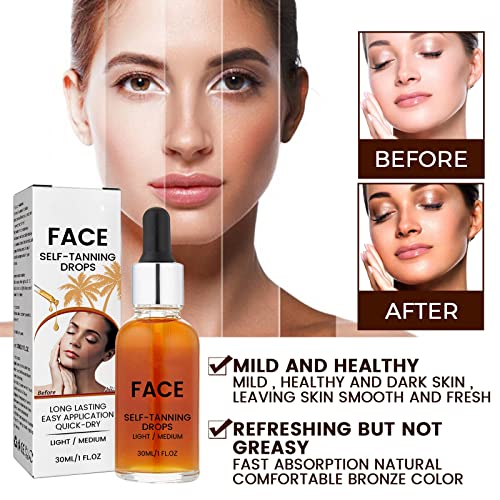 - 【Create Bronzed Skin】Face Self Tanning Drops can help you tan at home in a simple and healthy way, avoid heatstroke, sunburn, and skin aging.