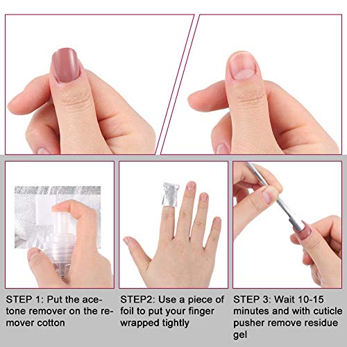 - EASY TO OPERATE - Just put a little acetone on the pad and wrap around nail/finger, wait a few minutes and the gel polish comes right off and work with our cuticle pusher and triangle cuticle peeler to remove will be better