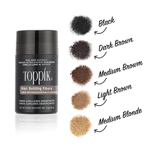 Toppik Hair Building Fibres Powder, Medium Brown - for A Thicker-looking Hairline, Crown and Beard, Instant Thinning Concealer for Men and Women