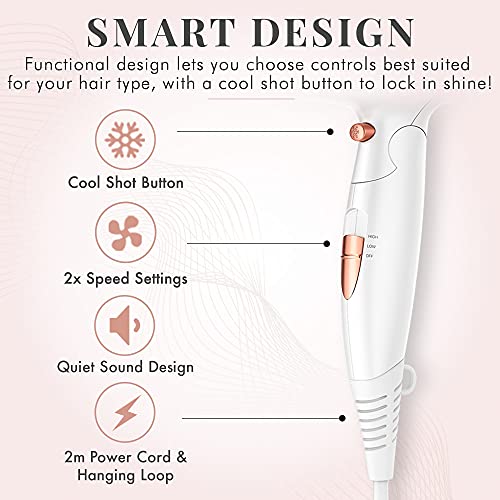 - ACHIEVE SLEEK & SMOOTH LOCKS - Our Travel Hairdryer for women will effortlessly dry, smooth and style all hair types to give you luscious locks that last all day long, with a cool-shot button to lock in that shine!