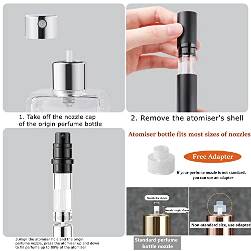 - 【ULTRAFINE NOZZLE】- perfume travel bottle has a ultra-fine spray nozzle and uniform spray, and it is more economical than original bottles of perfume. Save 20% on perfume. After the travel perfume bottle filling up, can be sprayed Approx.65 times