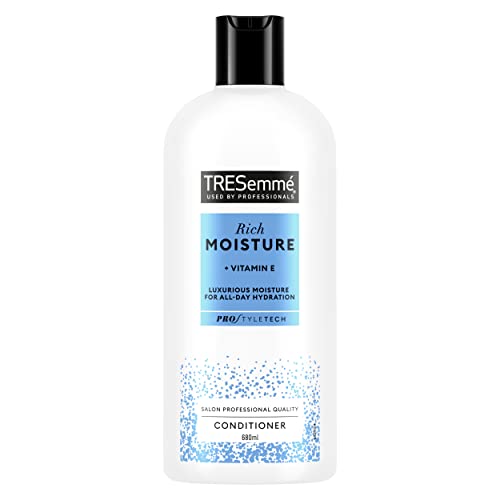 - Infused with vitamin E, Tresemme Rich Moisture Shampoo and Conditioner system keeps hair luxuriously soft and hydrated all day long