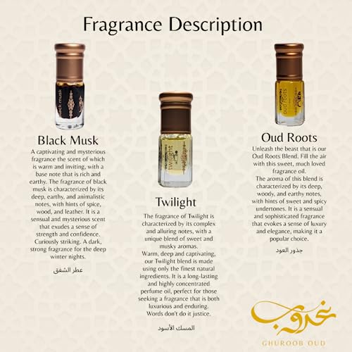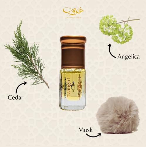 Twilight Perfume Oud Oil Blend Fragrance (الشفق) by Ghuroob Oud | 3ml Bottle Velvet Pouch Included | Cedar, Angelica, Musk Notes | Arabia Attar P Twilight Perfume Oud Oil Blend Fragrance (الشفق) by Ghuroob Oud | 3ml Bottle Velvet Pouch Included | Cedar, Angelica, Musk Notes | Arabia Attar P
