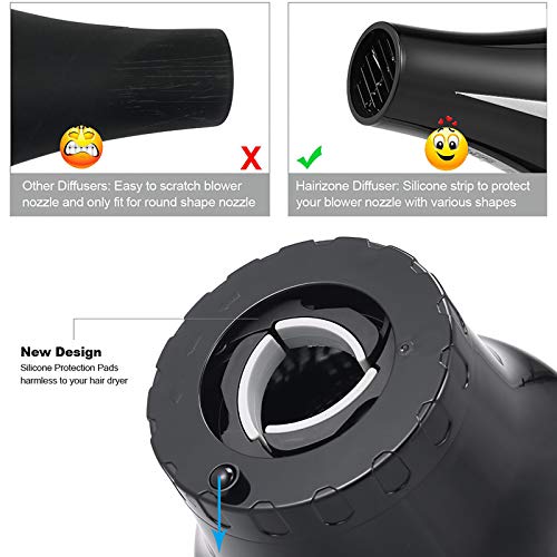 - ✨【Premium Material】The hair diffuser is made from high quality environmentally friendly ABS material, resistance to water, and heat-resistant. The buckle is made with 3 silicone non-slip pads for secure lock and does not damage the hairdryer. With a universal hair diffuser, you do not need to worry about being too close to the hairdryer and getting burned.