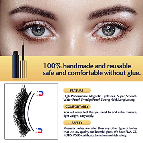 • 【Feature】 High performance magnetic eyelashes, super smooth, waterproof, sweatproof, smudge proof, strong hold, long lasting. This set comes with 2 tubes of special eyeliner with ultra-fine magnetic particles that allow the magnetic eyeliner to easily attach and stay on.