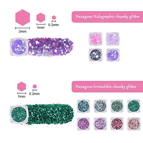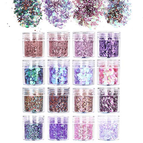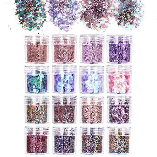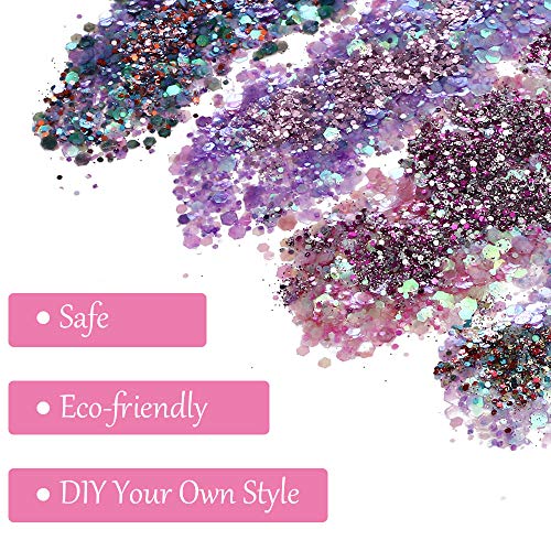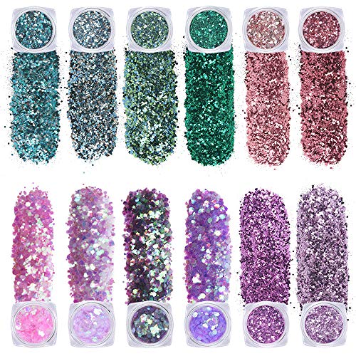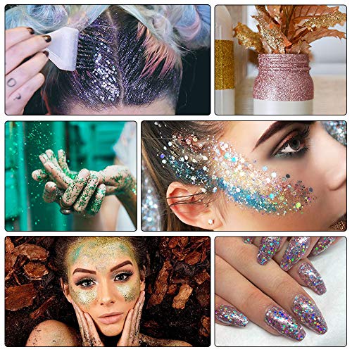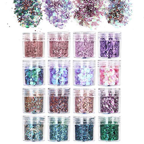 - ✯【MULTIPLE USES】Chunky glitters are perfect for makeup and DIY Art. Suitable for your face, body, eye shadow, lips, cheeks, makeup, nail art, and more; or decorate your home, mobile phone's case, glasses, made card, body art, etc.
