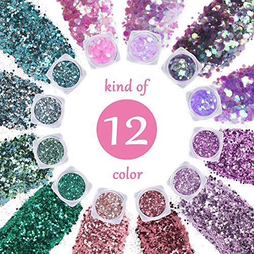 - ✯【12 AMAZING COLORS】Ultra sparkling glitter comes in 12 amazing colors, mixed colors and size of the glitter together making the possibilities of beauty are endless, making you be the eye-catcher in every occasion.