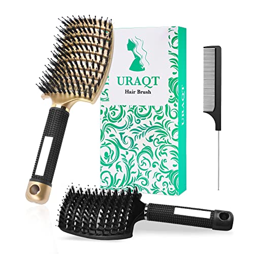 - 【NATURAL HEALTHY HAIR CARE PRODUCT】URAQT natural boar bristle brushes help to spread hair oil/sebum clear down to the ends of your hair to protect & add moisture, heal dry and frivolous hair while removing excess oil, keep it looking shiny and improve hair texture. It's the best natural environmental protection smoothing hair products for women and girls.
